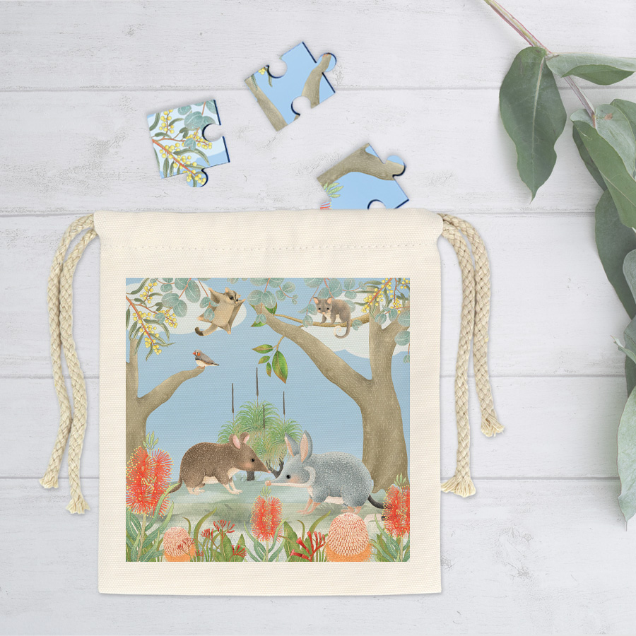 • Presented in a cute drawstring bag for keeping puzzle pieces safe and secure.