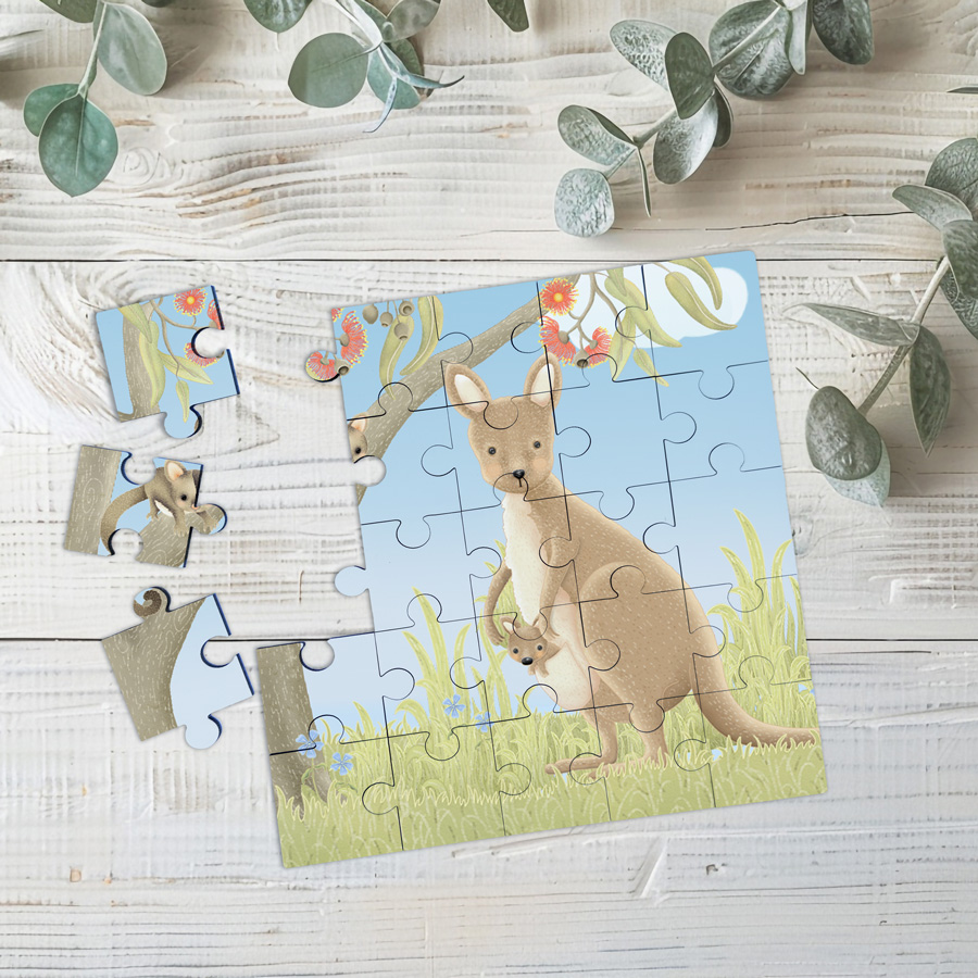 25-piece jigsaw puzzle featuring an illustrated kangaroo with joey.