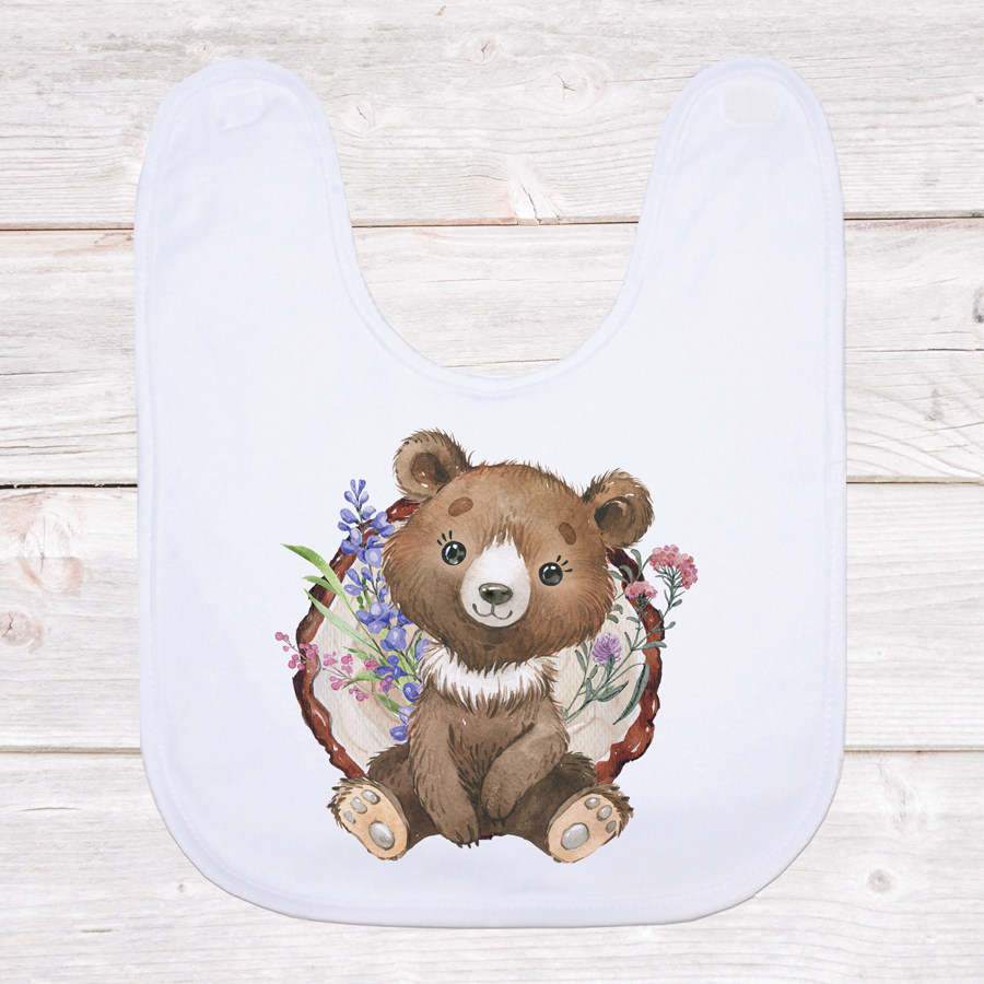 Perfect for mealtime, this adorable, personalised bear baby bib adds a touch of fun while keeping your little one’s clothes clean.