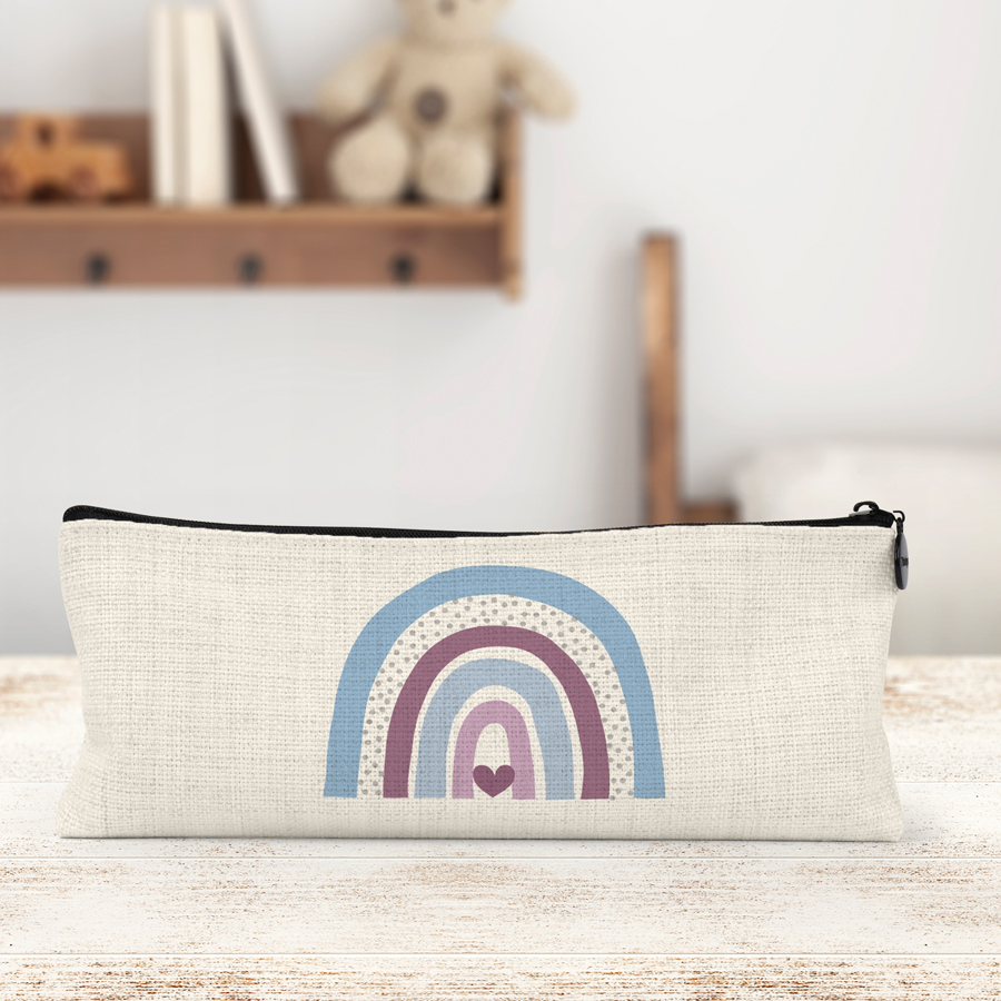 Make school time fun for your young one with a cute personalised blue rainbow pencil case. Made from a high quality linen material, these pencil cases are perfect for storing pens, pencils, sharpeners and other small items.