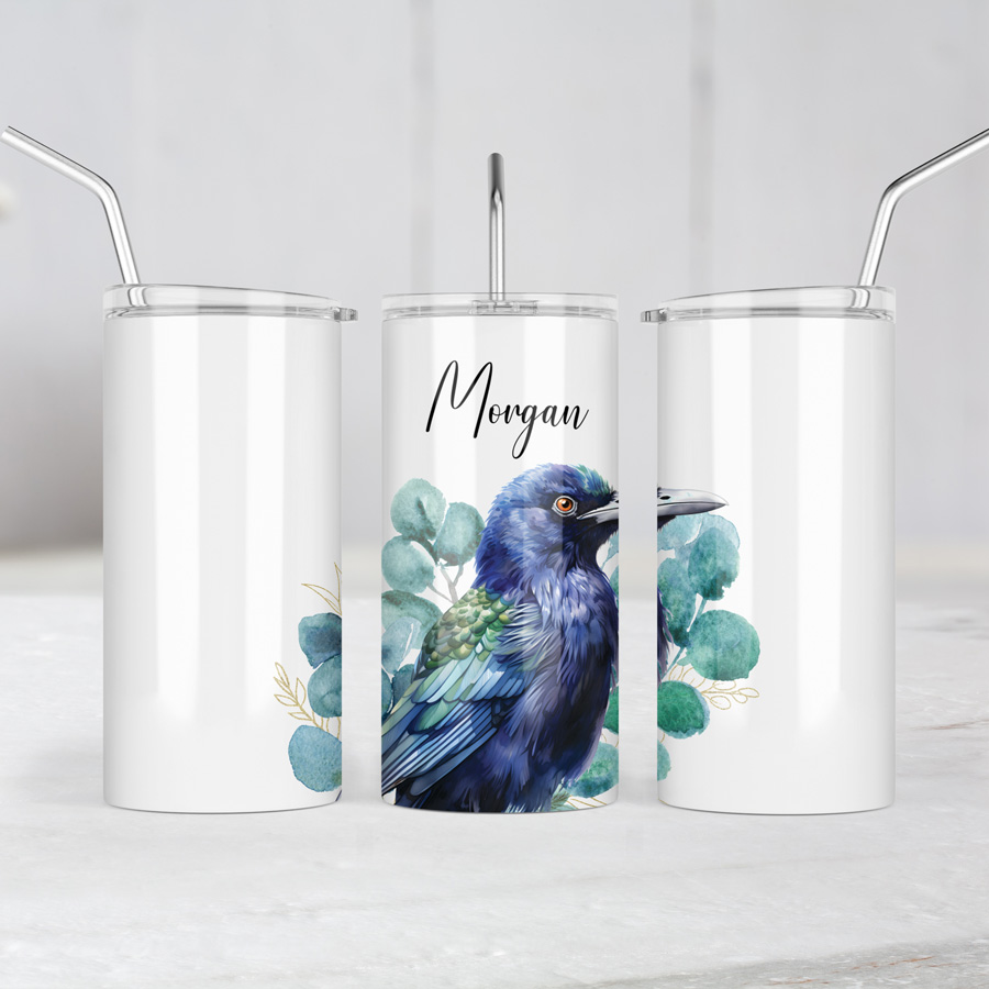 Enjoy a touch of Australian wildlife every day with this charming Satin Bowerbird tumbler. Its double-wall keeps drinks hot or cold for hours, making it as practical as it is beautiful. The addition of a spill proof plastic lid and re-useable metal straw make it perfect for life on the go.