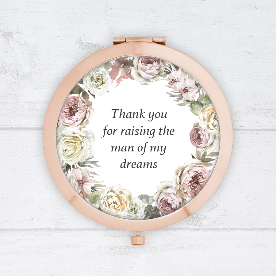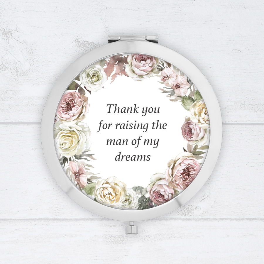 Our personalised compact mirror makes a meaningful gift for the bride’s mother-in-law. The slim design is perfect for slipping into small handbags or clutches.