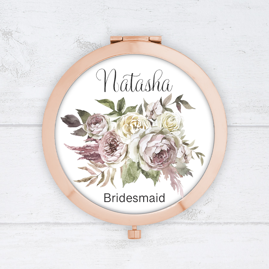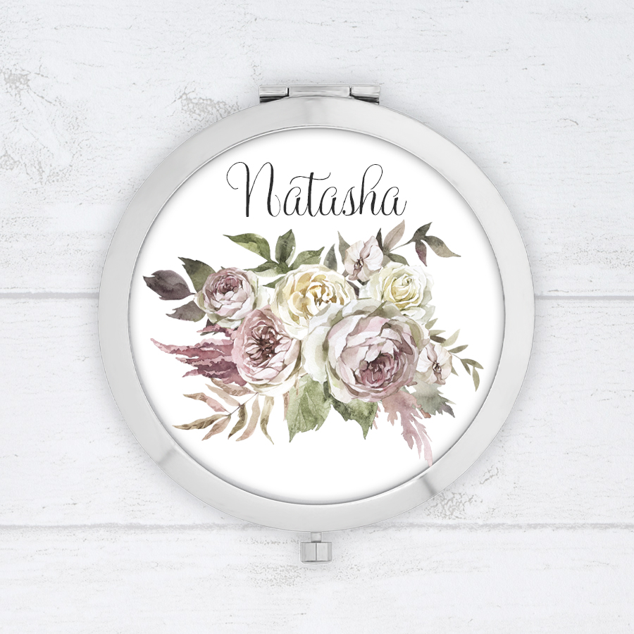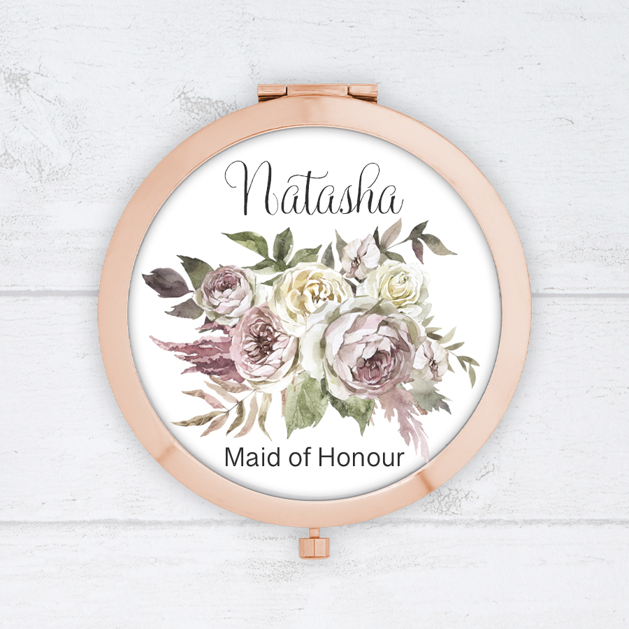 Our personalised compact mirrors make a thoughtful gift for any occasion and are a beautiful addition to bridesmaids gift boxes. Their slim design is perfect for slipping into small handbags or clutches.