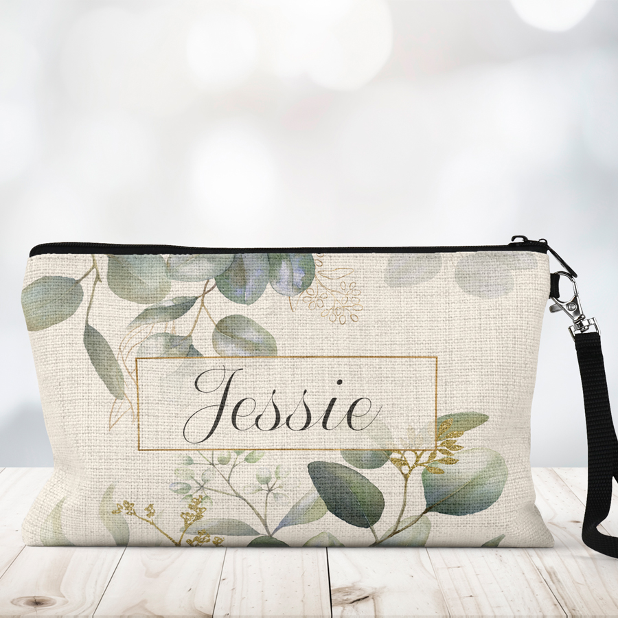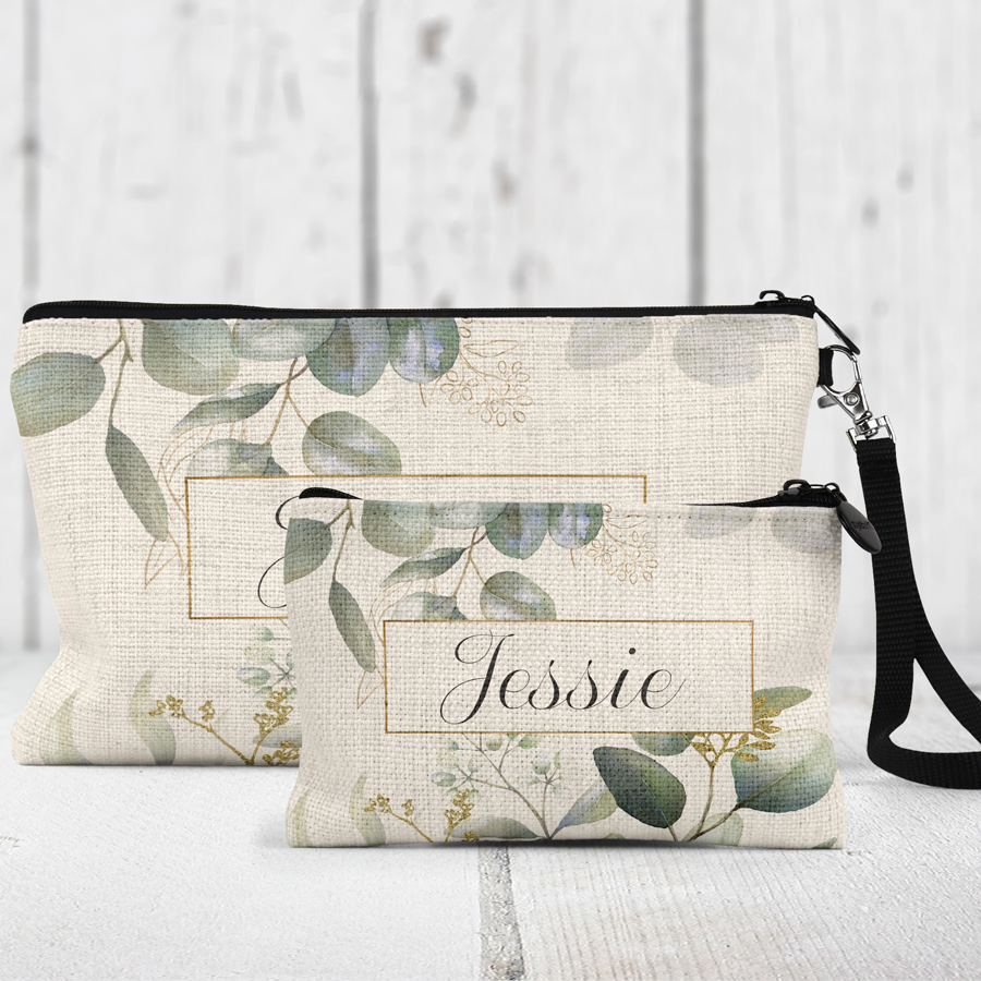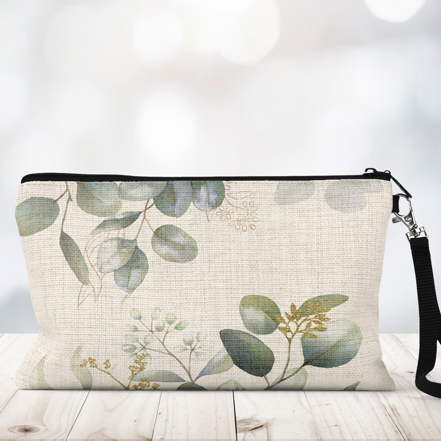 Stay organised with our high-quality eucalyptus makeup bag, perfect for daily use or travel. This versatile pouch featuring lovely eucalyptus leaves is ideal for storing cosmetics, stationery, keepsakes and more.