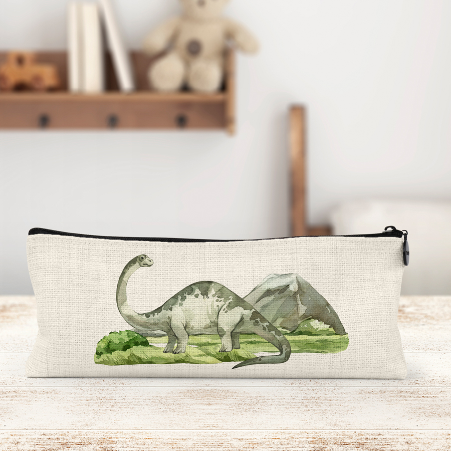 Our personalised dinosaur pencil case featuring a Brontosaurus makes a great, practical gift for dino lovers! Made from a high quality linen material, these pencil cases are perfect for storing pens, pencils, sharpeners and other small items.