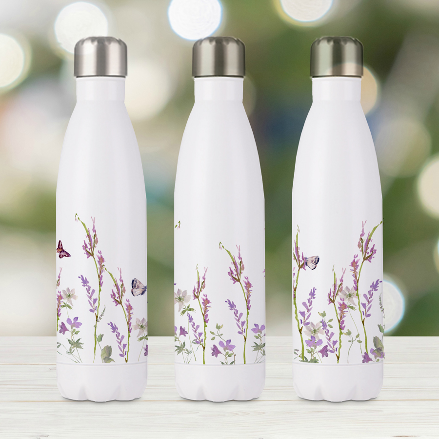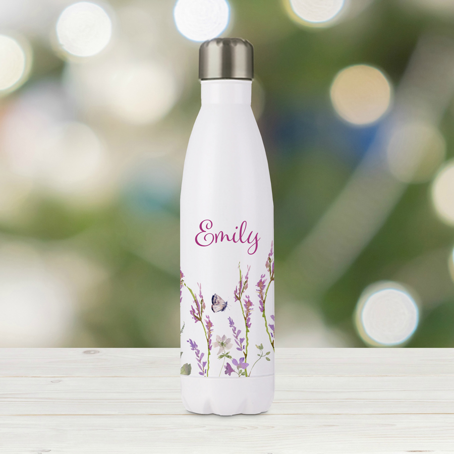Personalised Drink Bottle | 500ml – Purple Flowers
