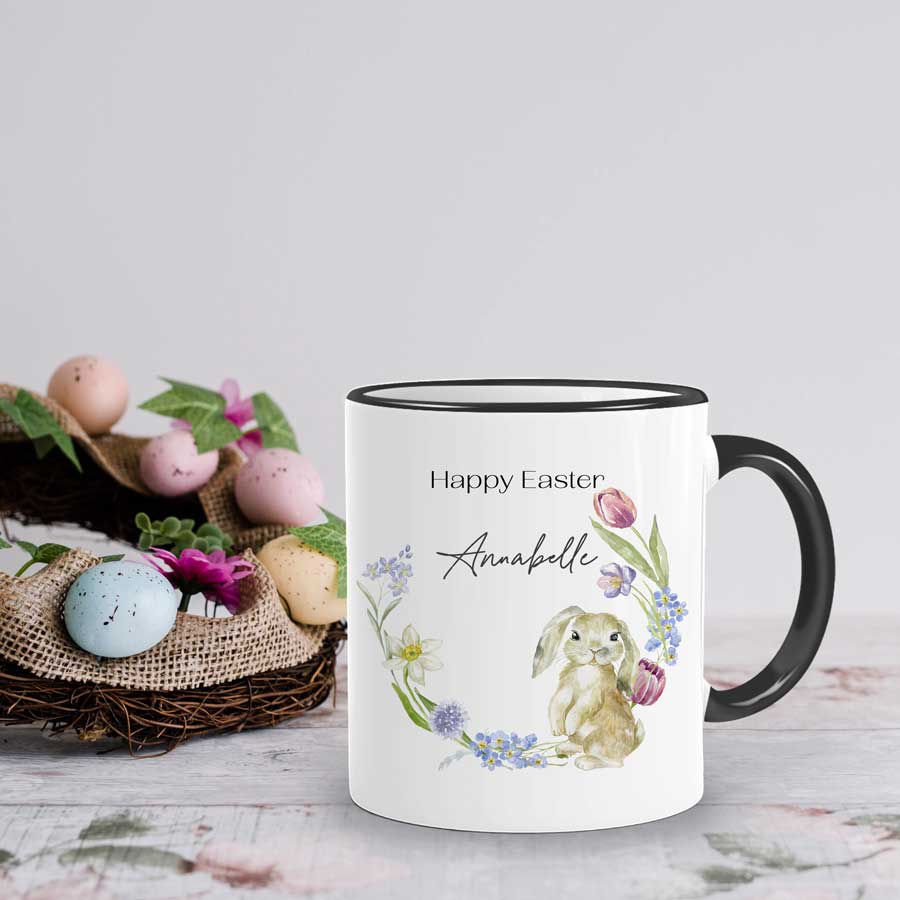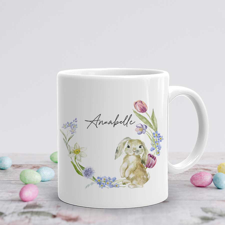 This cute bunny mug makes an adorable Easter gift for all ages. Personalise with a name only or a name and Happy Easter.