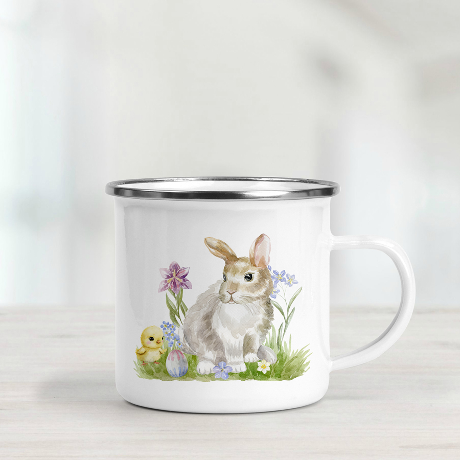 This cute personalised Easter bunny mug makes an adorable kids gift. Enamel mugs are perfect for everyday use and are tough enough to withstand drops and knocks. Their lightweight design makes them ideal for little hands.