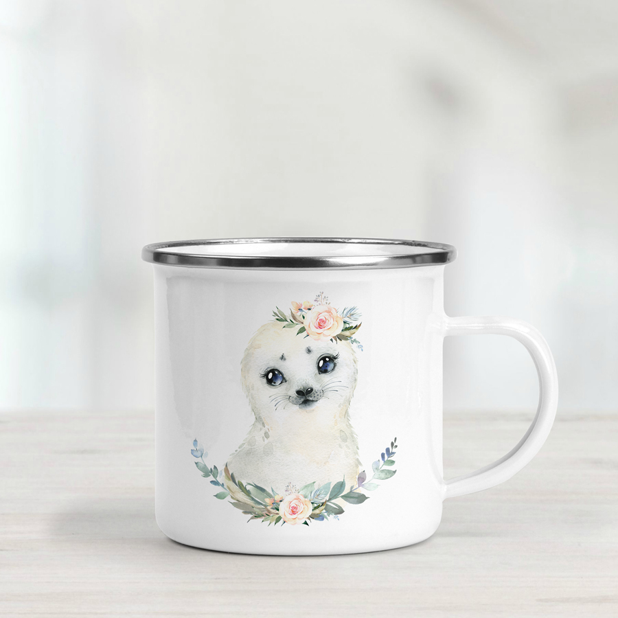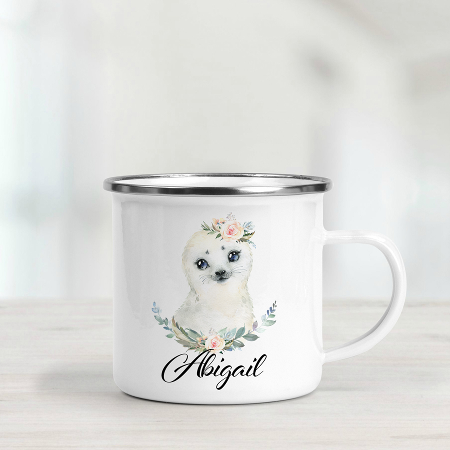Personalised Enamel Mug – Baby Seal With Bouquets