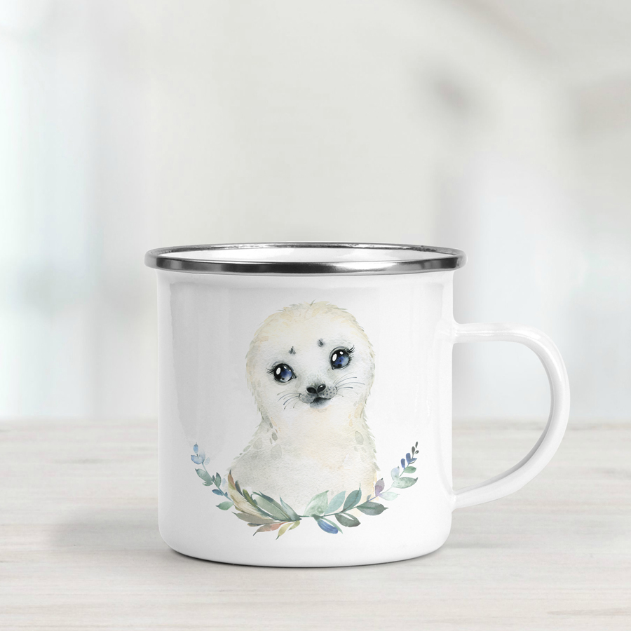 Our cute, personalised baby harp seal enamel mug makes a super awesome gift for your little one. Perfect for everyday use – whether at home or out exploring – this lightweight mug is just the right size for tiny hands.