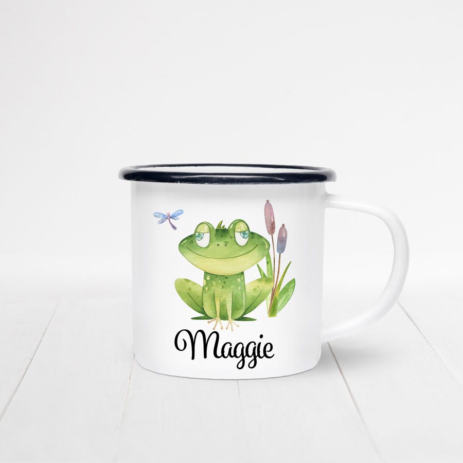 Our personalised frog enamel mug makes a cute, fun gift for those who love the outdoors. The compact and lightweight design makes the mug a great choice for young ones. Perfect for everyday use – at home, camping, bushwalking or other outdoor activities – this mug will be loved by all ages.