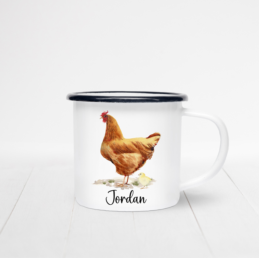 Our personalised rooster enamel mug makes a cute, fun gift for those who love the outdoors. The compact and lightweight design makes the mug a great choice for young ones. Perfect for everyday use – at home, camping, bushwalking or other outdoor activities – this mug will be loved by all ages.