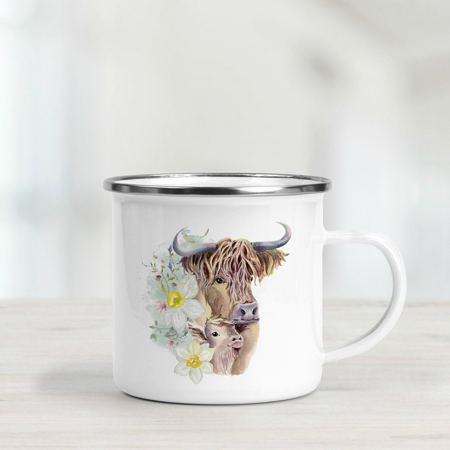 Our personalised Highland cow enamel mug makes a cute, practical gift for all ages. Lightweight and durable, it’s ideal for camping trips, hiking or simply enjoying a cosy drink at home. It’s compact size makes it perfect for little adventurers, being tough enough to handle the bumps of daily use.