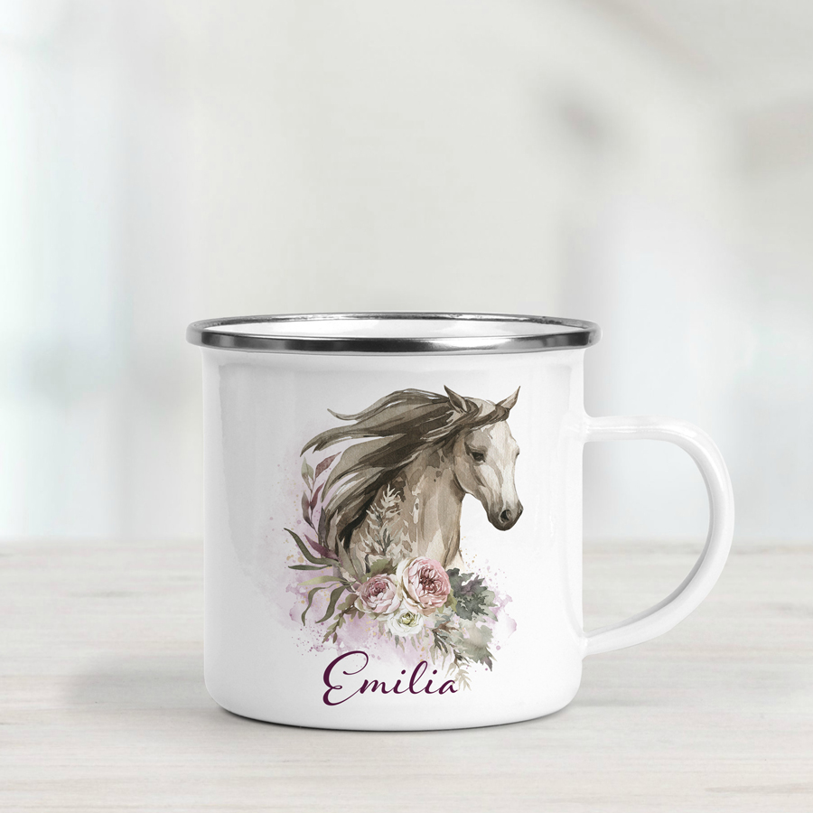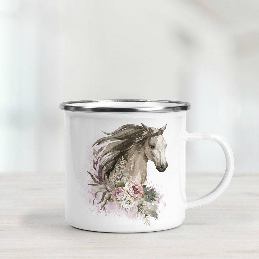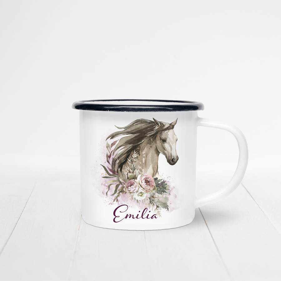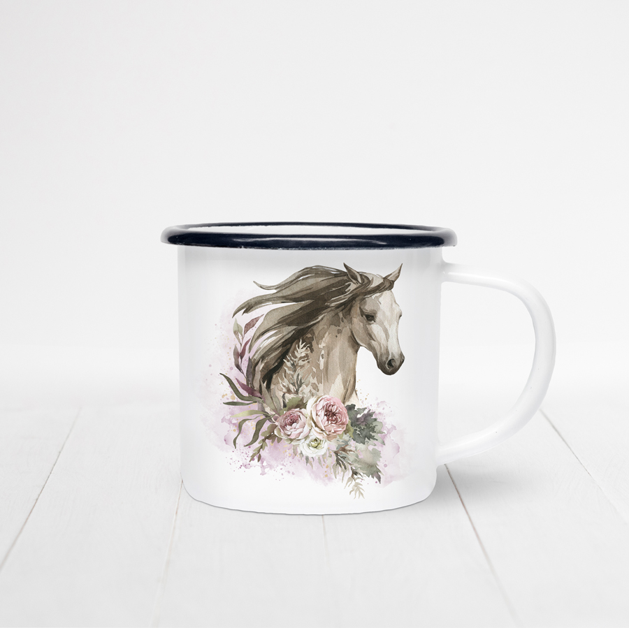 Our personalised floral horse enamel mug makes a lovely, practical gift for any occasion. The compact and lightweight design makes the mug a great choice for young ones. Perfect for everyday use – at home, camping, bushwalking or other outdoor activities – this mug will be loved by all ages.