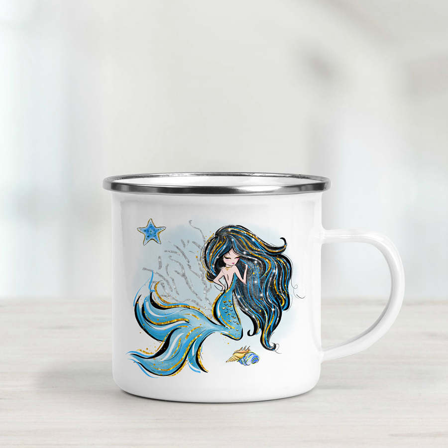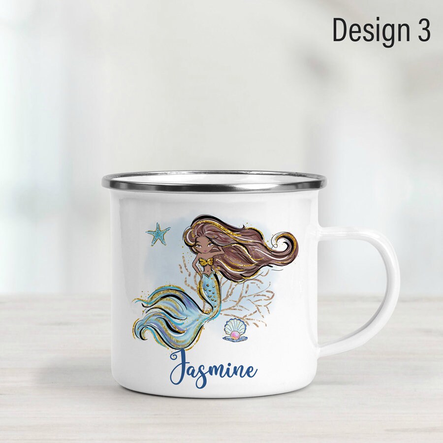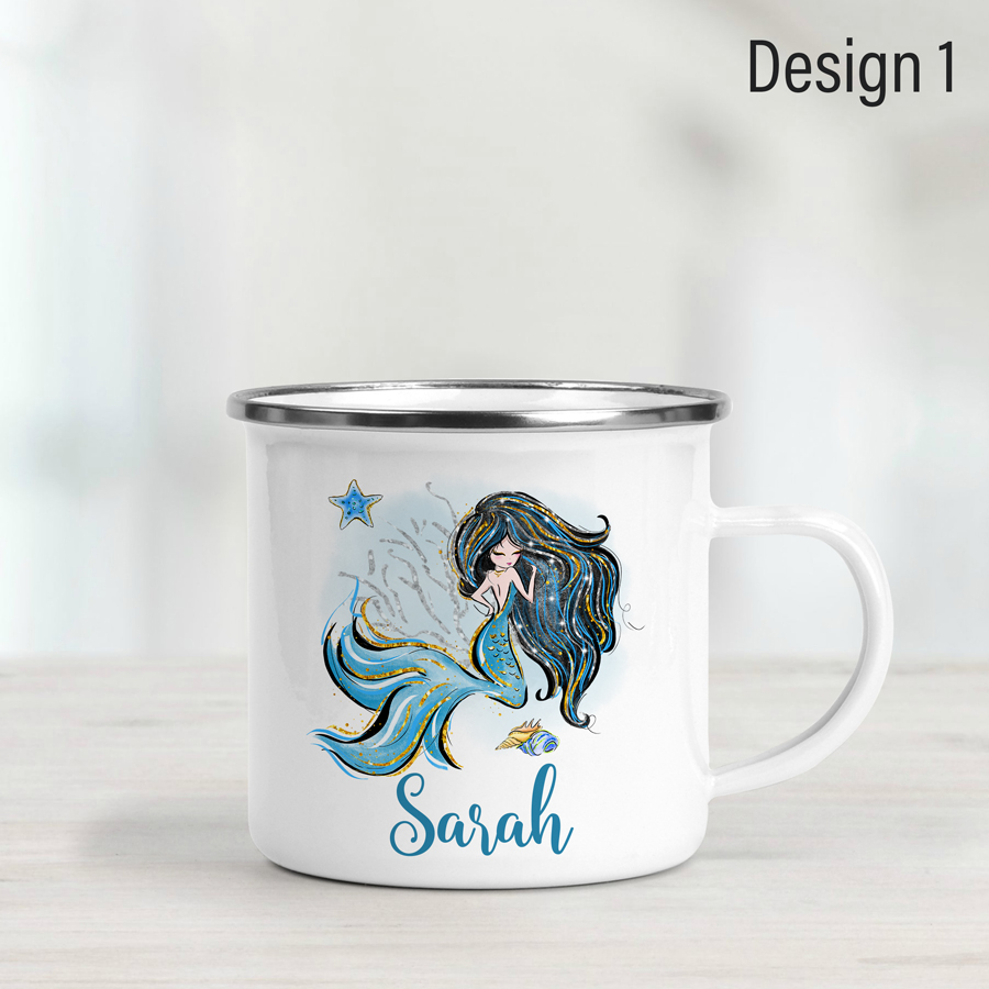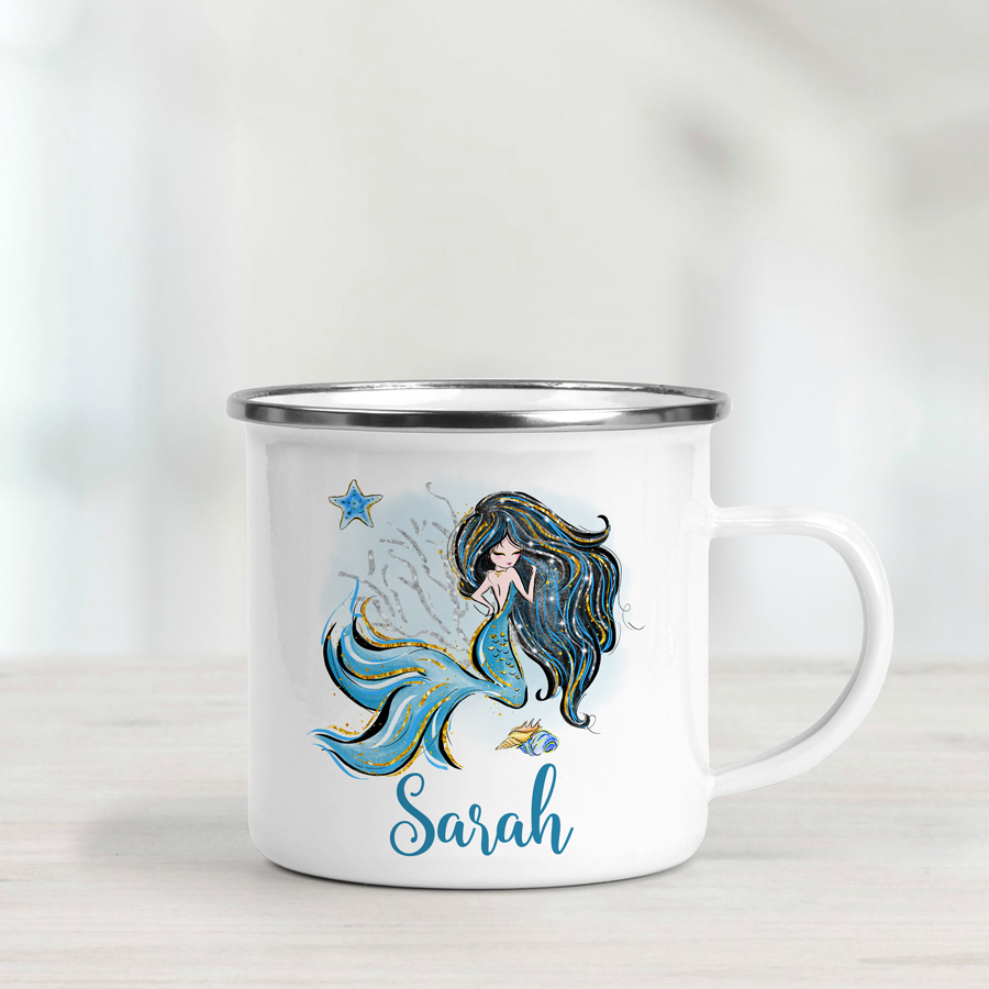 Our personalised mermaid enamel mug makes a practical and fun gift for young ones. Perfect for everyday use – whether at home or out exploring – this lightweight mug is just the right size for tiny hands.