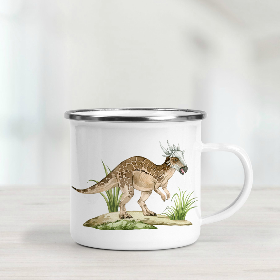 Our Stygimoloch dinosuar enamel mug makes a super awesome gift for young dinosaur lovers. Lightweight and durable, it’s perfect for everyday adventures — whether at home, camping, or exploring the outdoors.