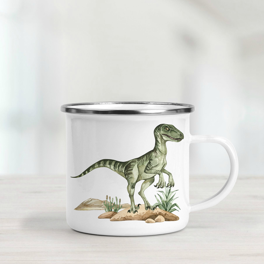 Our Velociraptor dinosaur enamel mug makes a super awesome gift for young dinosaur lovers. Lightweight and durable, it’s perfect for everyday adventures — whether at home, camping, or exploring the outdoors.