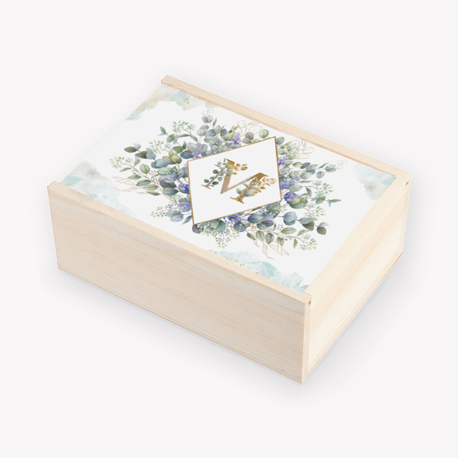 Personalised Keepsake Box – Eucalyptus Greenery With Initials
