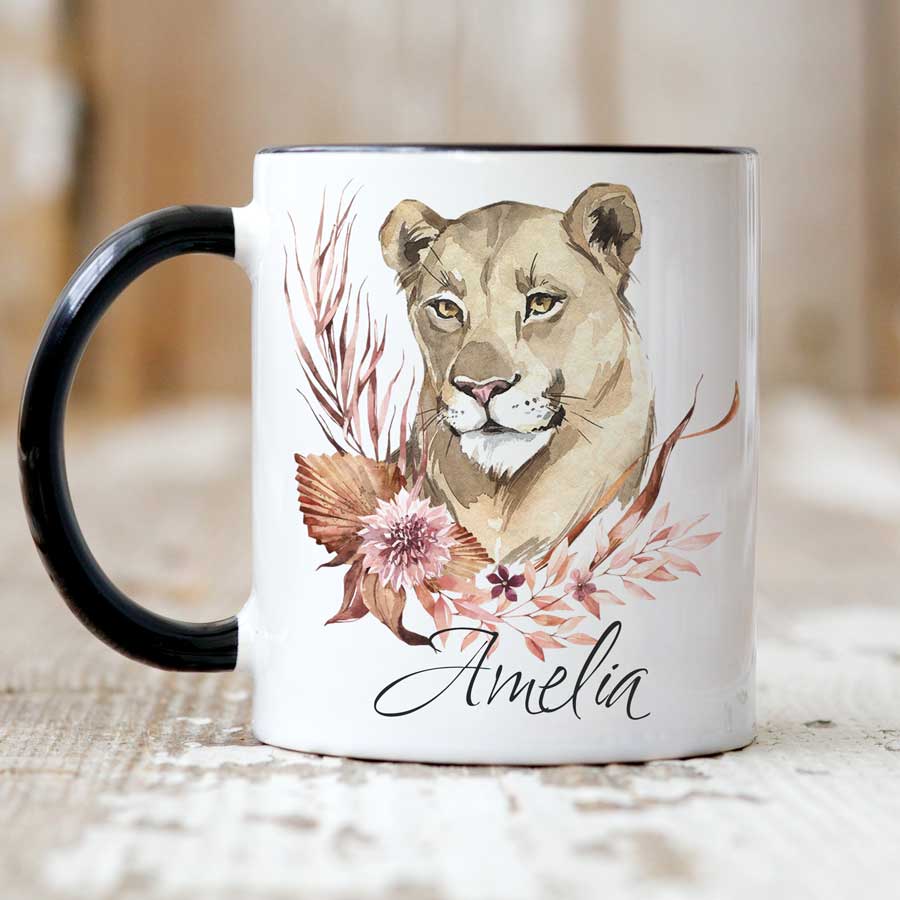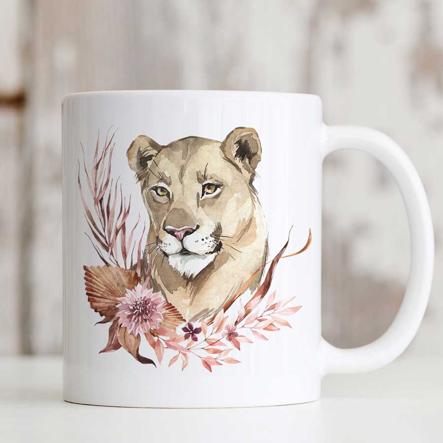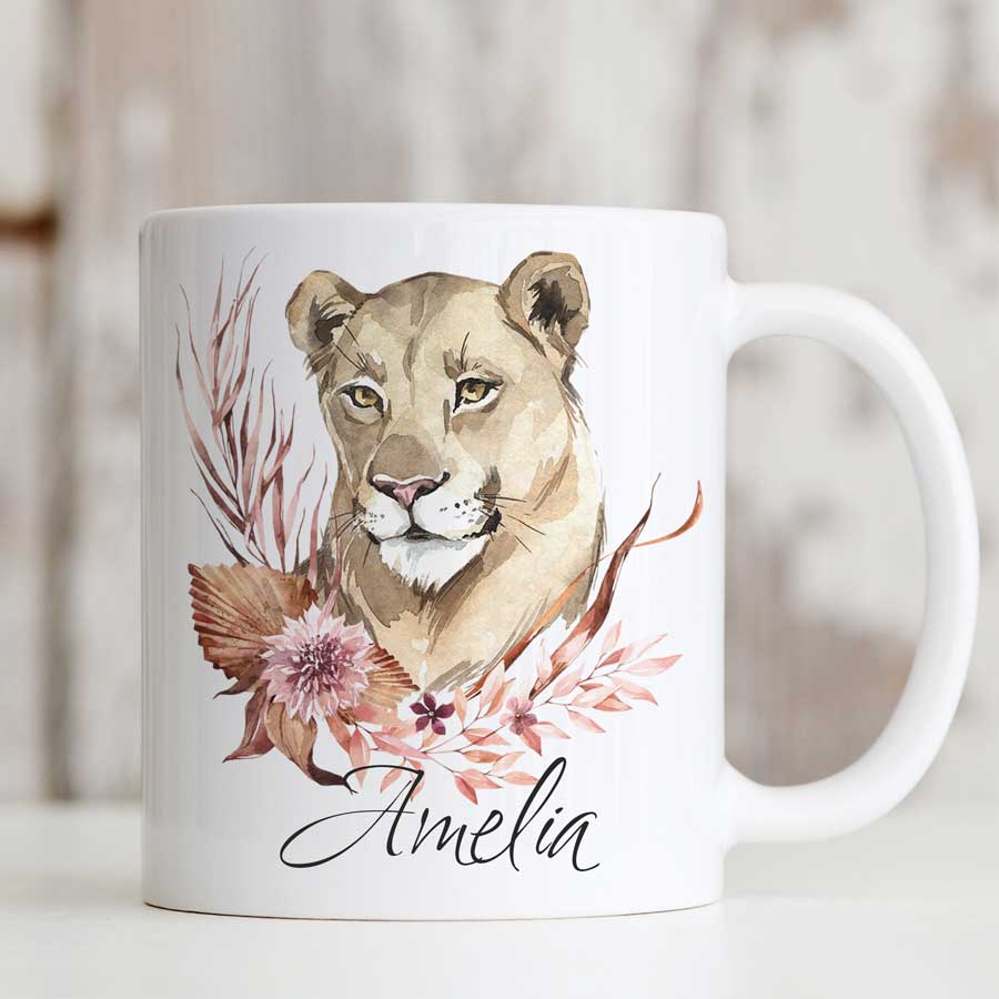 Enjoy your morning brew in this lovely lioness mug. Makes a great gift for family and friends with the added touch of personalised text.