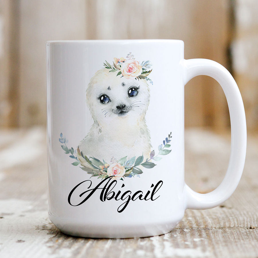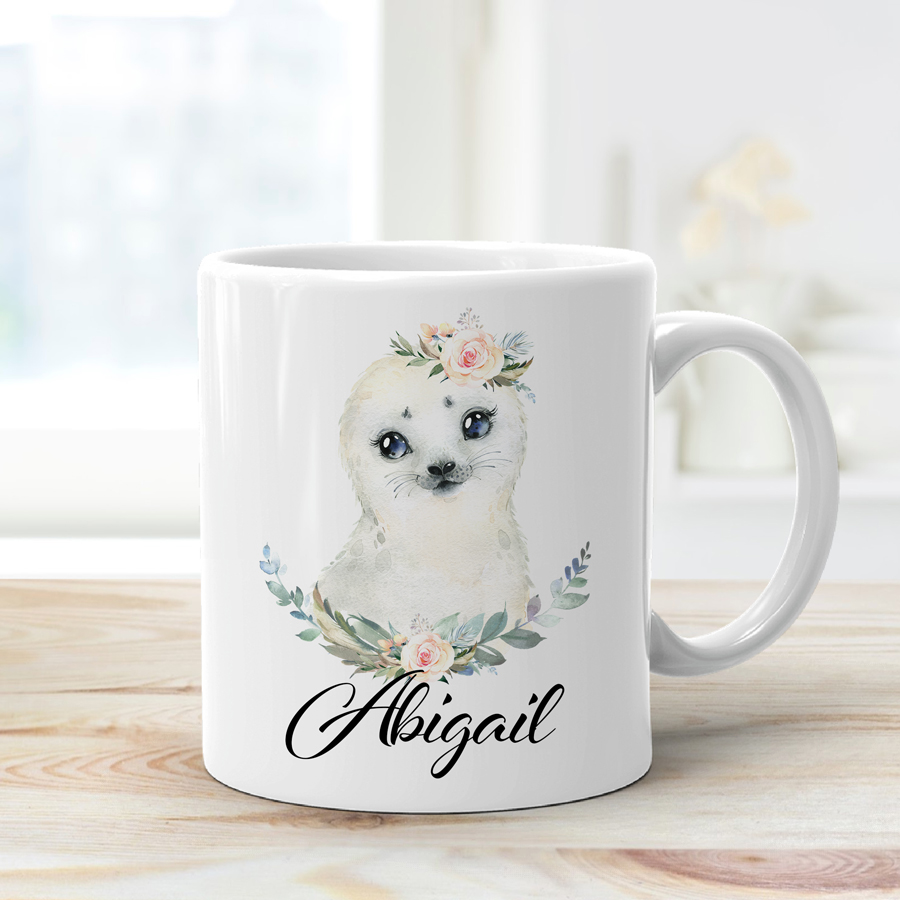 Personalised Mug – Baby Seal With Bouquets