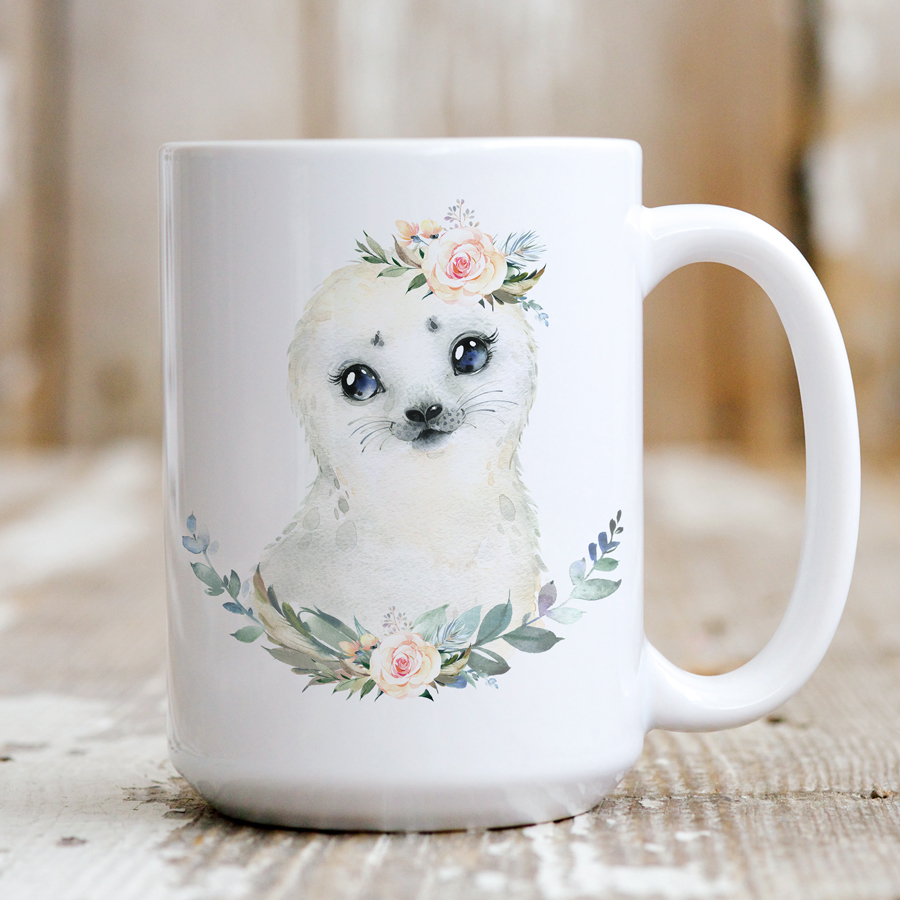 Personalised Mug - Baby Seal With Bouquets