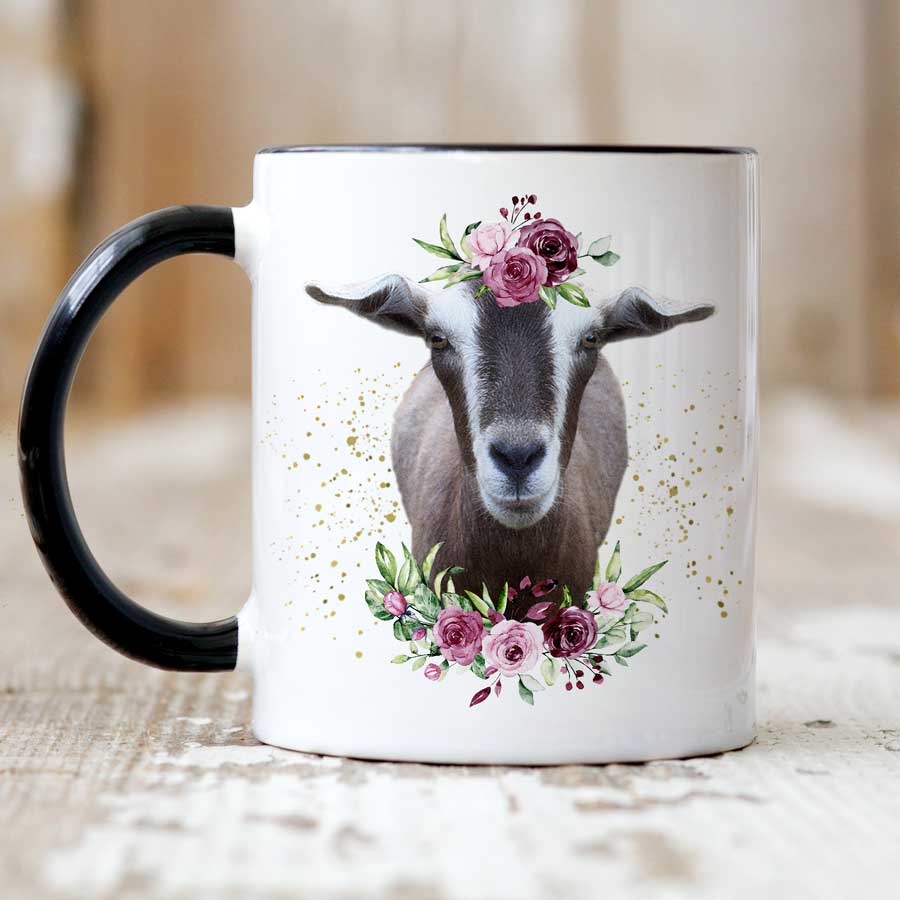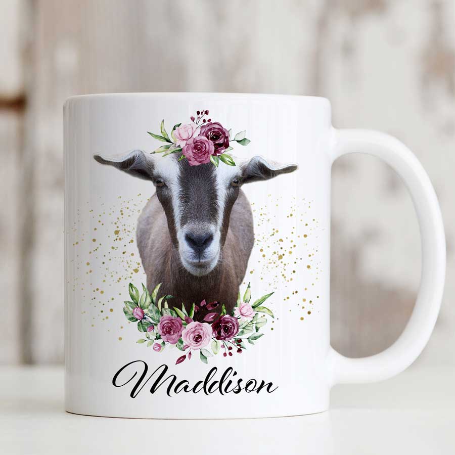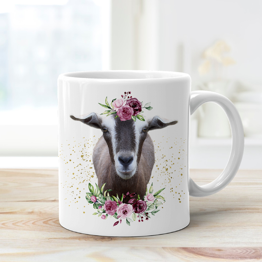 PERSONALISED MUG – GOAT WITH FLOWERS