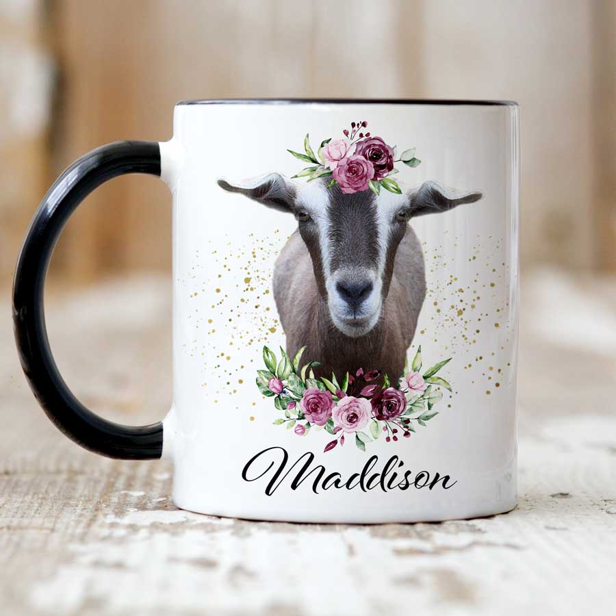 PERSONALISED MUG - GOAT WITH FLOWERS PERSONALISED MUG - GOAT WITH FLOWERS