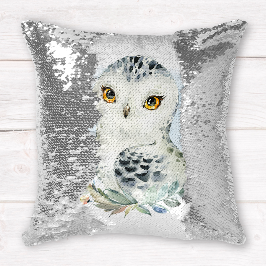 Make bedtime extra fun with this magical personalised owl sequin cushion cover! Perfect for birthdays and special surprises, it will add sparkle to any room. The image is printed onto shimmering white sequins and with a simple swipe of the hand, shiny silver sequins are revealed, hiding the design – magic!