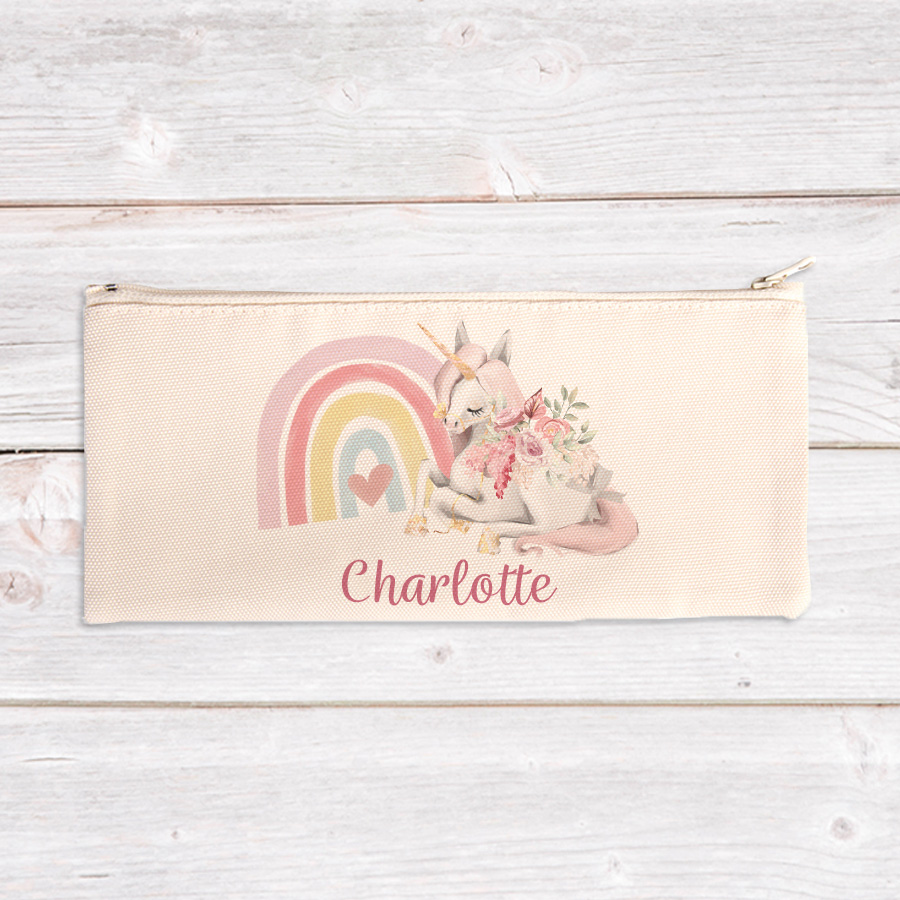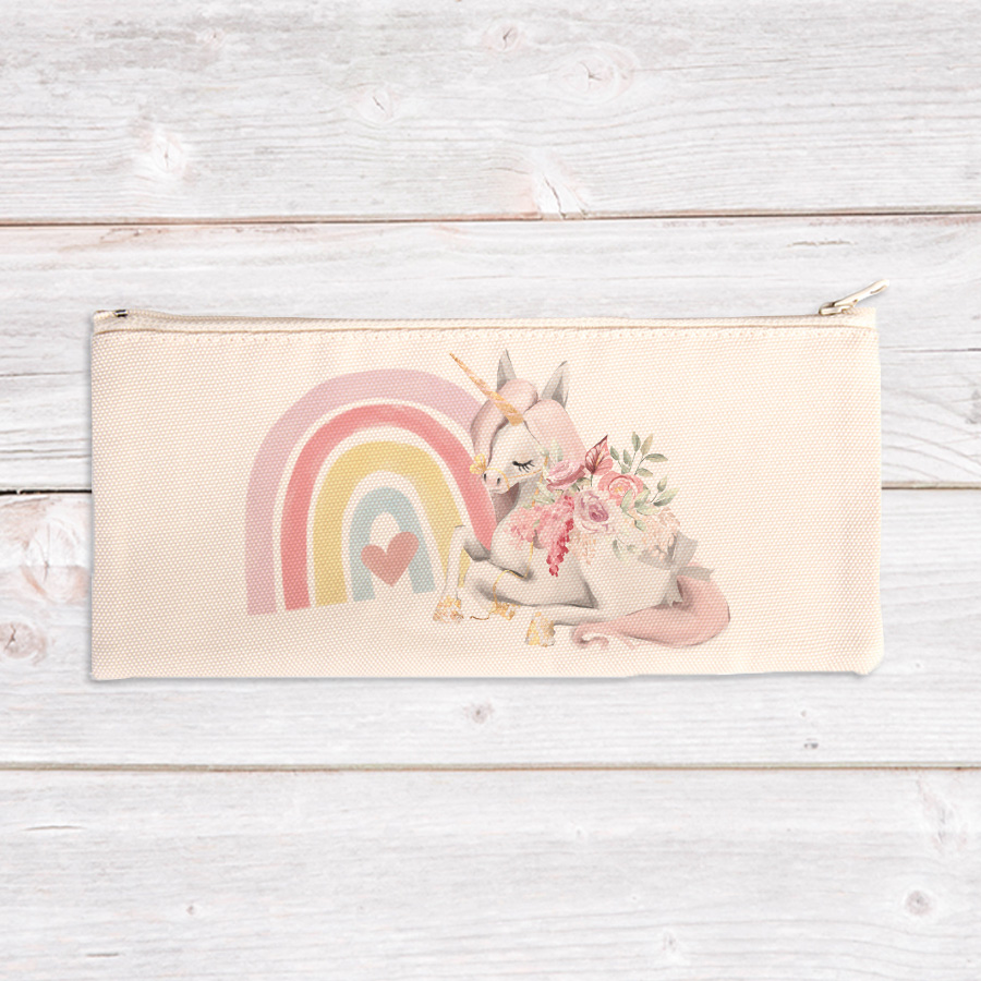 Personalised Unicorn with Rainbow Canvas Pencil Case