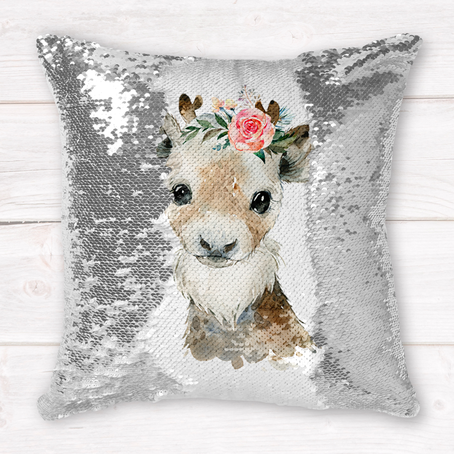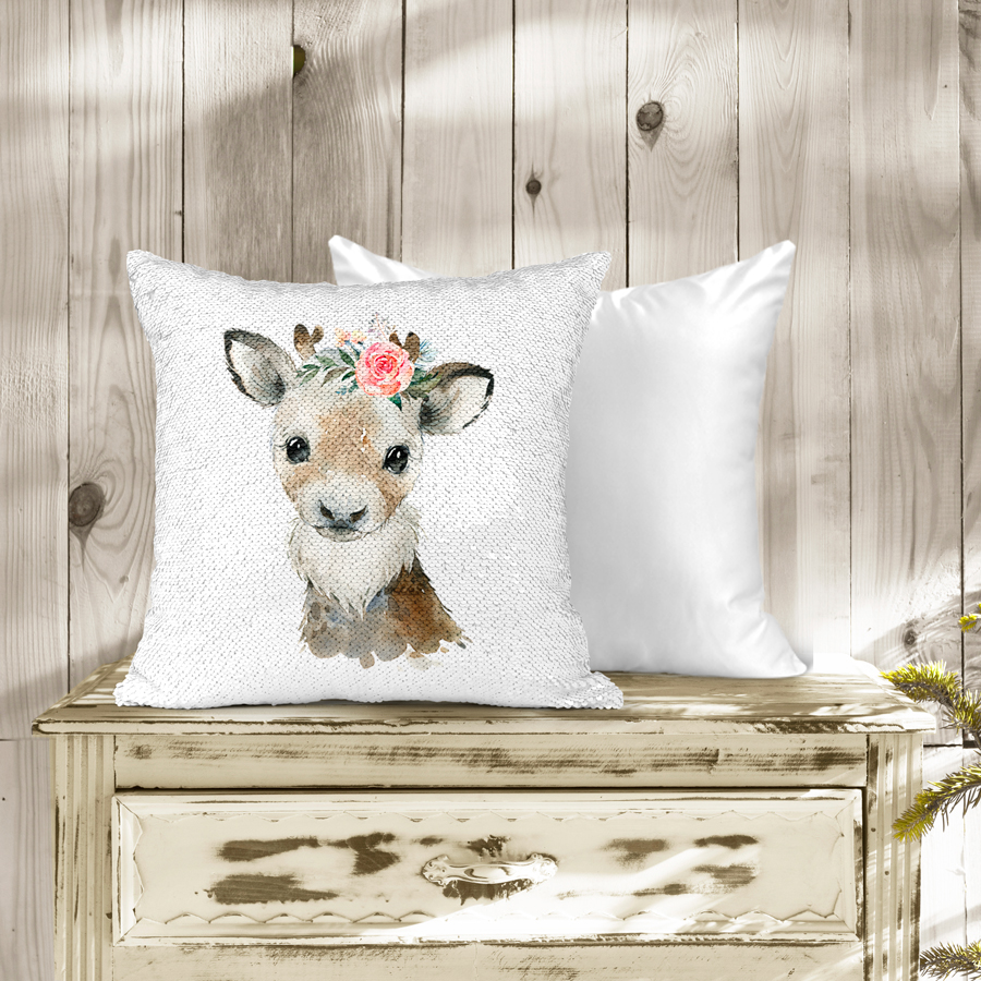 Personalised Reindeer with Bouquet Sequin Cushion Cover Personalised Reindeer with Bouquet Sequin Cushion Cover