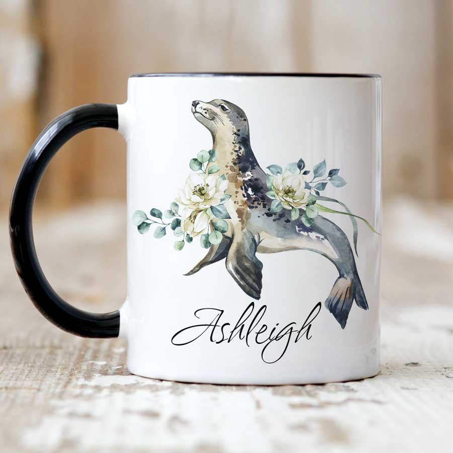 Personalised Mug - Seal With Flowers Personalised Mug - Seal With Flowers