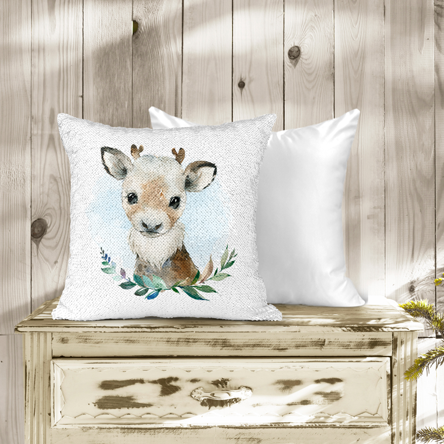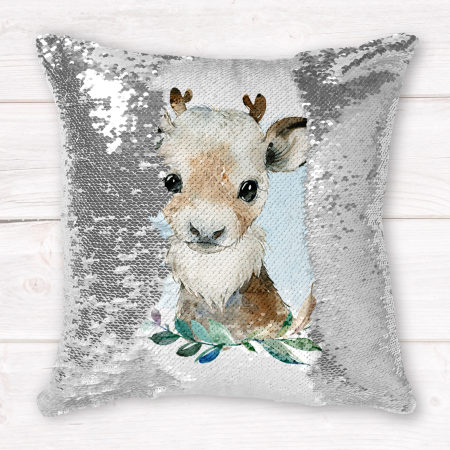 Make bedtime extra fun with this magical personalised reindeer sequin cushion cover! Perfect for birthdays and special surprises, it will add sparkle to any room. The image is printed onto shimmering white sequins and with a simple swipe of the hand, shiny silver sequins are revealed, hiding the design – magic!