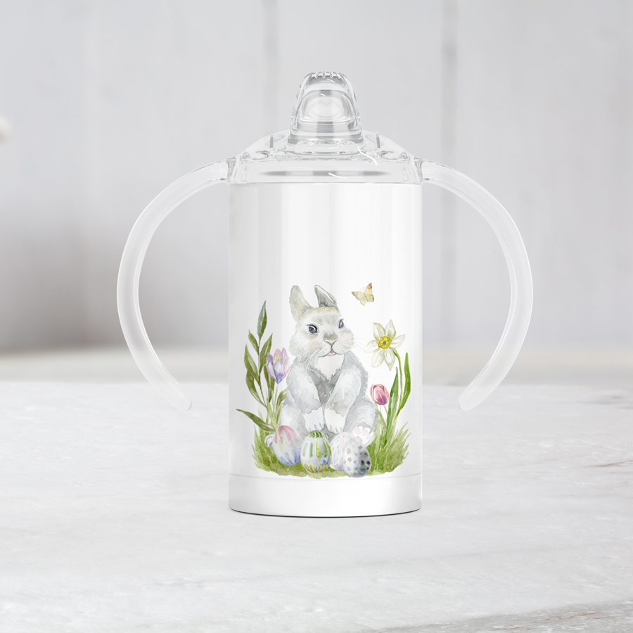 Our personalised bunny sippy cup brings fun and charm to every mealtime! Featuring an adorable, illustrated rabbit, it makes a cute and unique gift for baby showers, birthdays and other occasions.