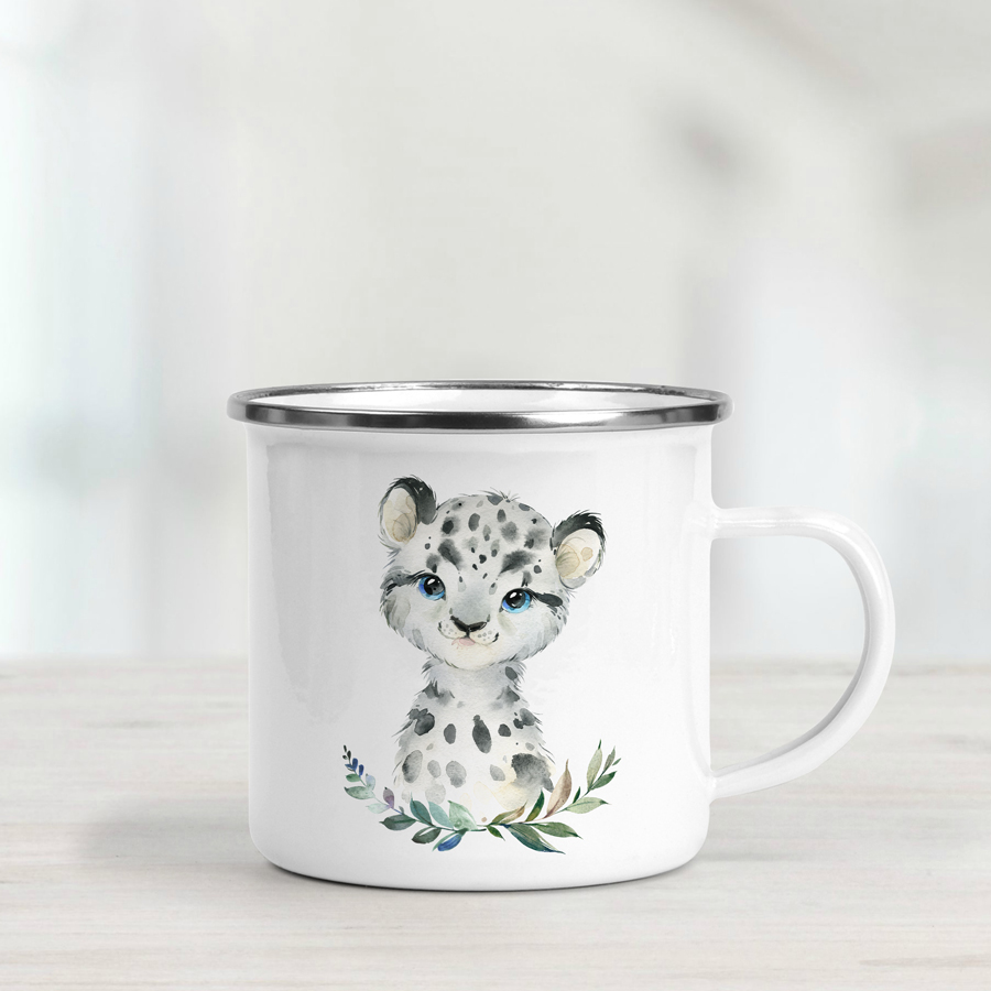 Our cute, personalised snow leopard enamel mug makes a delightful gift for your little one. Perfect for everyday use – whether at home or out exploring – this lightweight mug is just the right size for tiny hands.