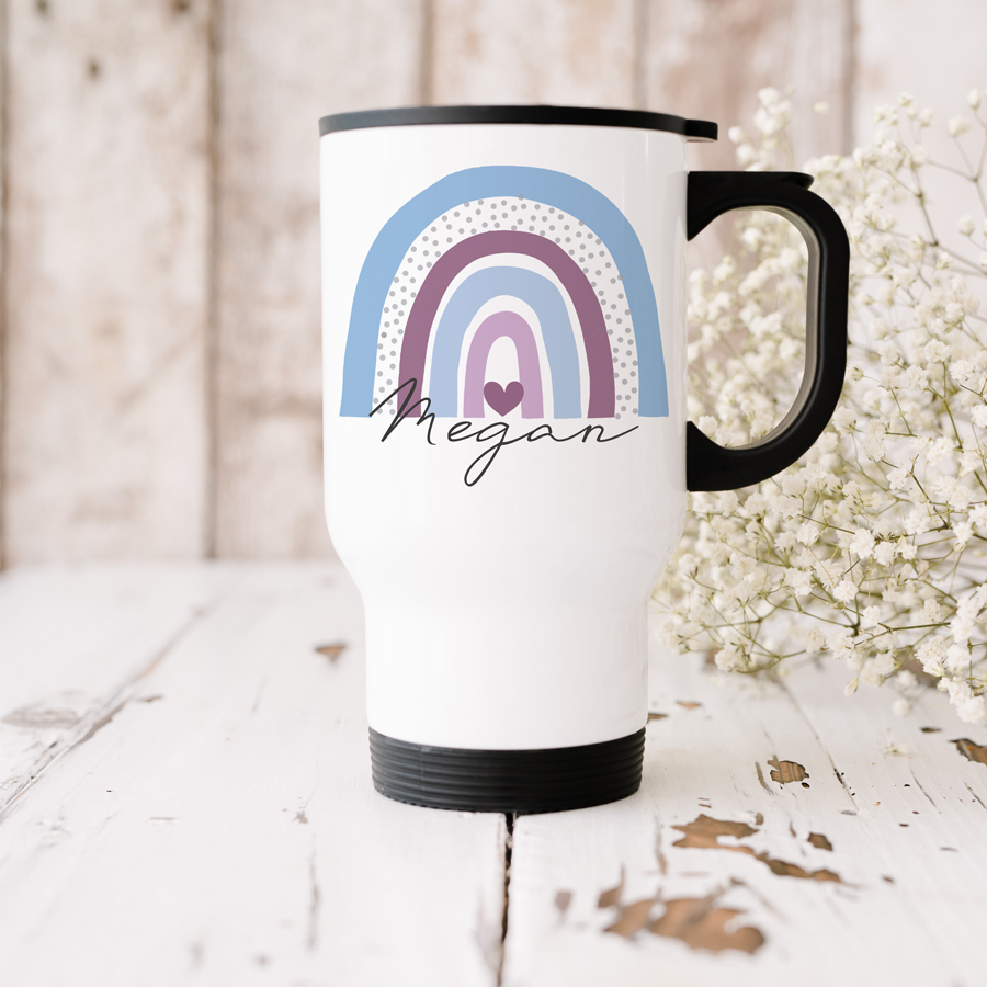 Personalised Travel Mug - Blue Rainbow Personalised Travel Mug - Blue Rainbow