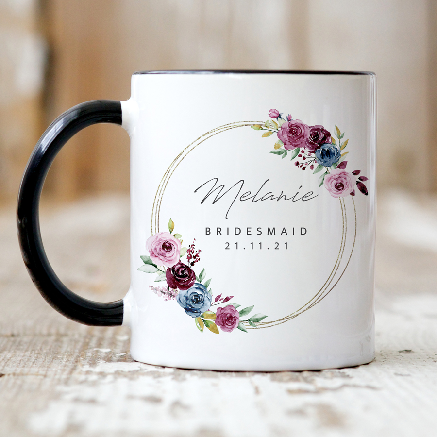 Personalised Wine Tumbler – Bridesmaid Gift – Framed Blue And Pink...ENTER YOUR EMAIL AND GET