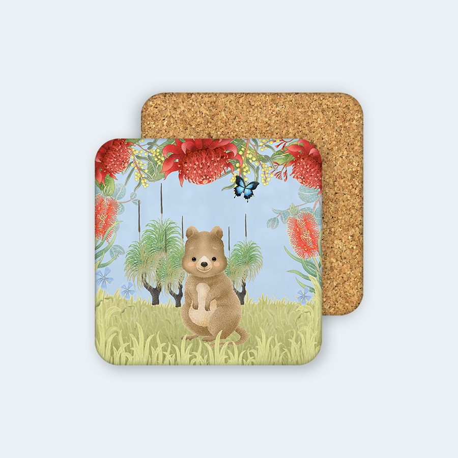 Bring the beauty of the Australian bush into your home and spark your child’s imagination with this adorable quokka coaster! Beautifully illustrated, this charming coaster makes a perfect gift for young animal lovers and wildlife enthusiasts.