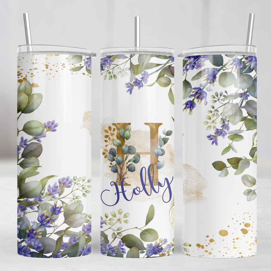 Personalised Skinny Tumbler 20oz - Lavender Blooms
