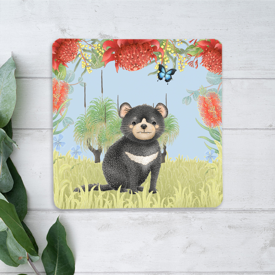 Bring the beauty of the Australian bush into your home and spark your child’s imagination with this adorable Tasmanian Devil coaster! Beautifully illustrated, this charming coaster makes a perfect gift for young animal lovers and wildlife enthusiasts.